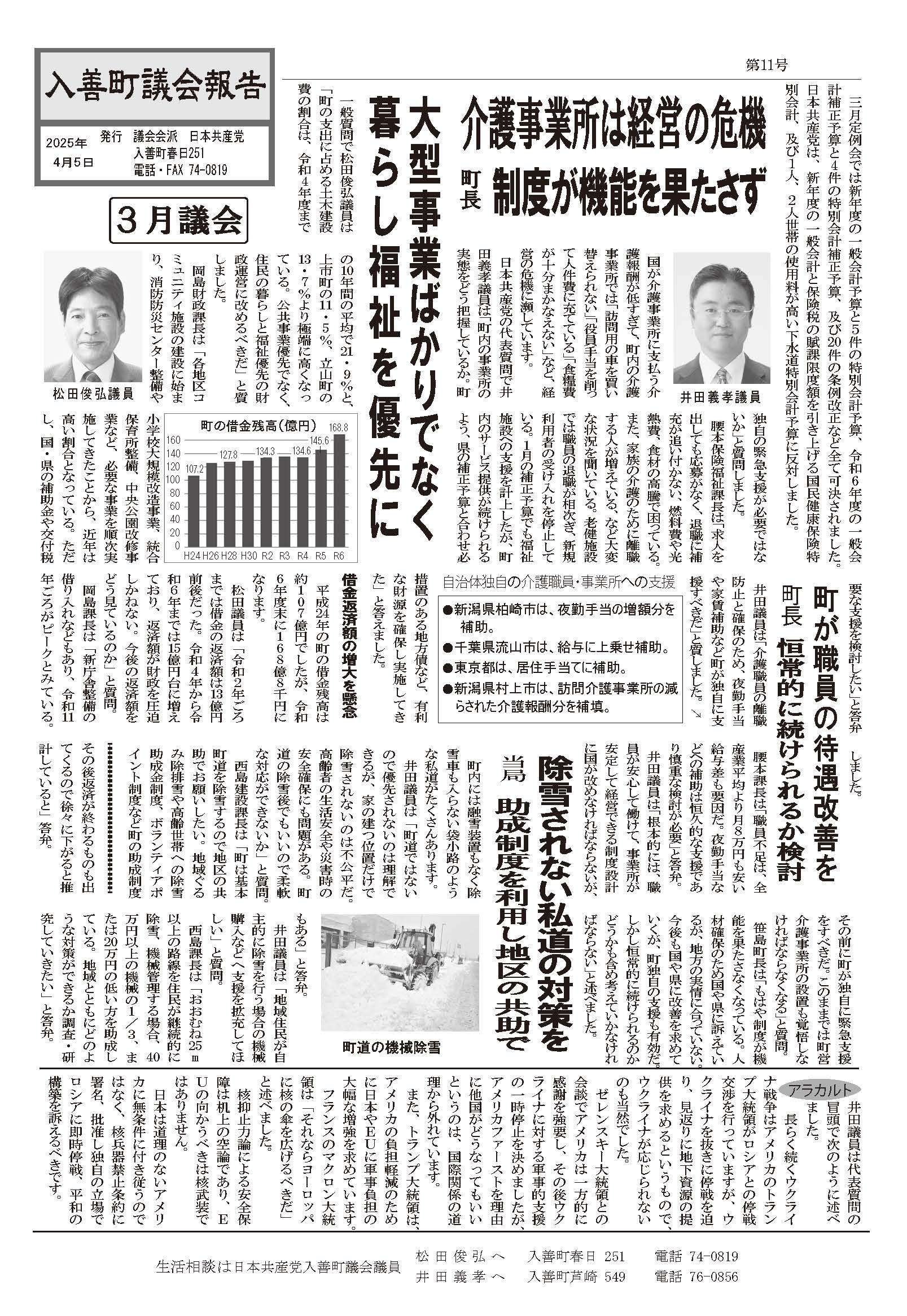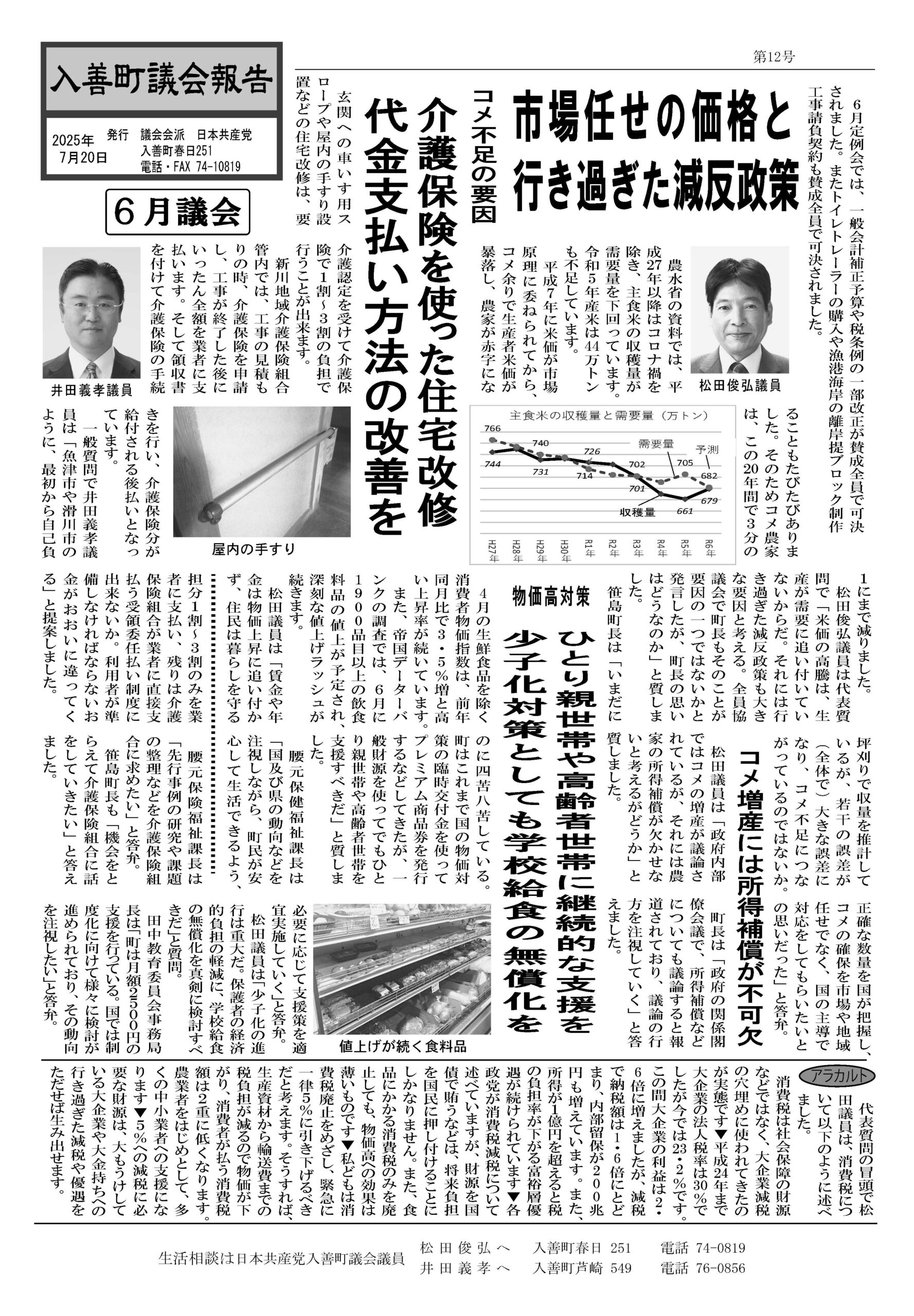 ・負担の大きい高齢者世帯に財政的支援を。町長 「令和7年産米は平年より収量が多くなると予想」