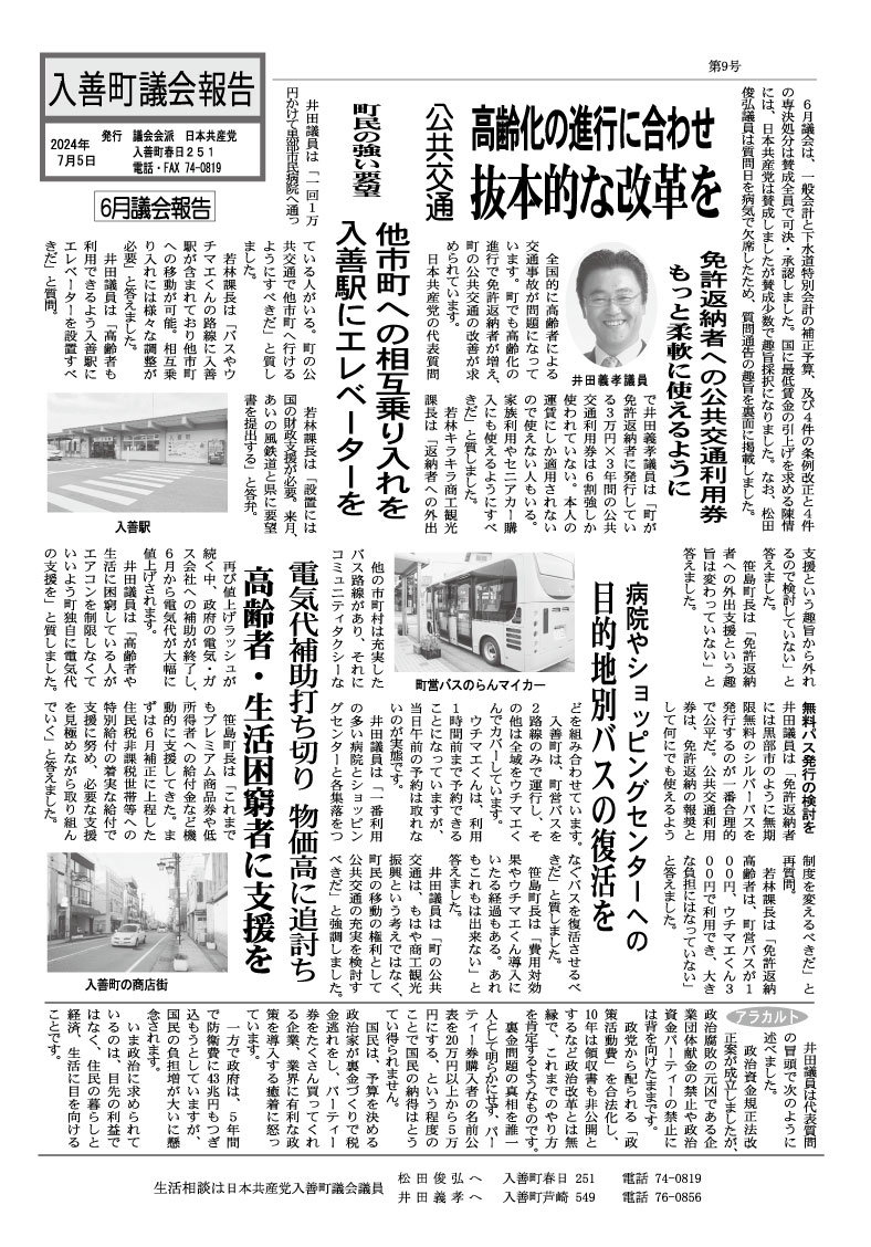 ・女性議員を増やすためにも一定の門戸を広げておくべき。♦️♦️♦️ 2024年9月議会報告は民法10月号で掲載しました。♦️♦️♦️